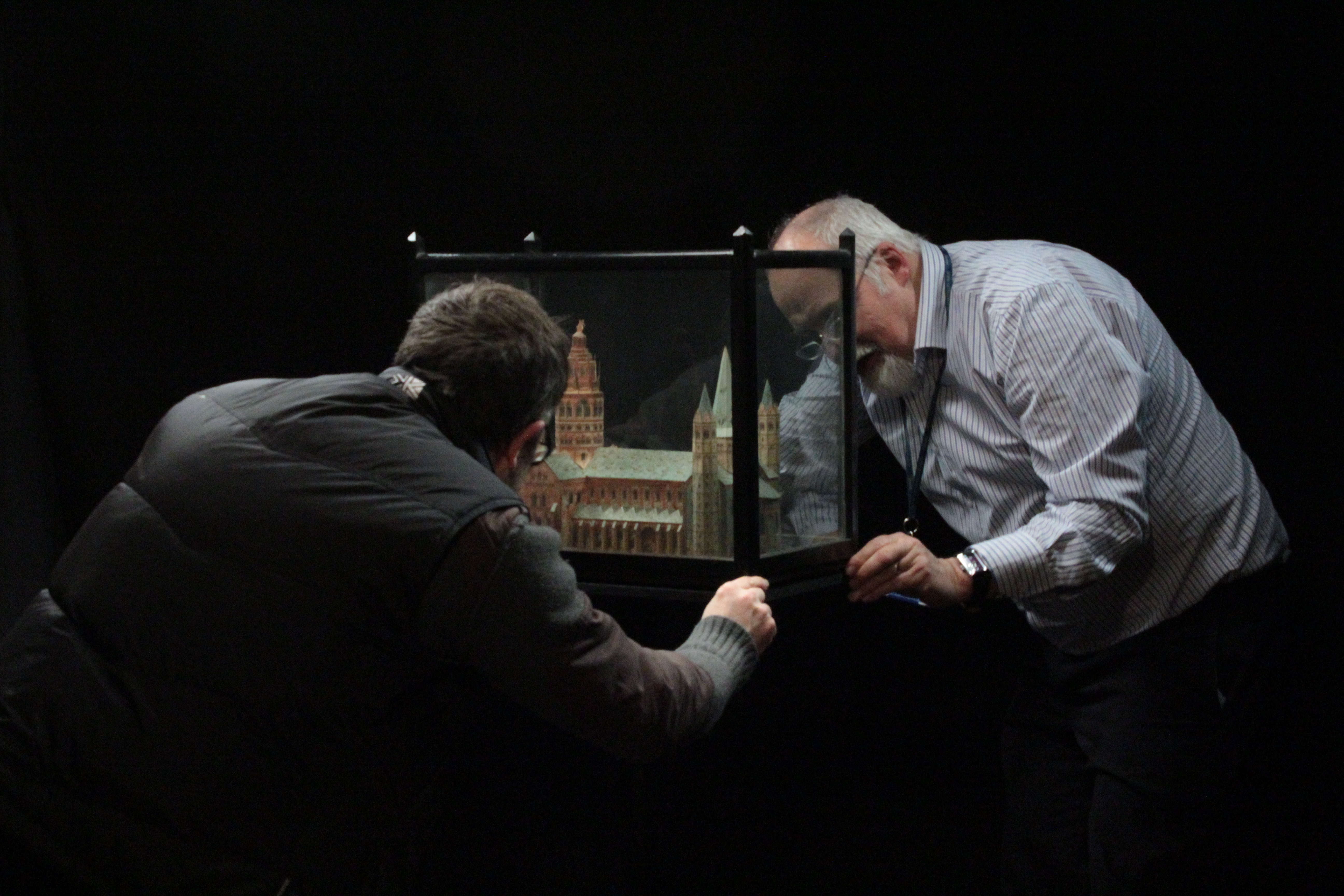 There is one surviving copy of the pamphlet. Its text is coupled with starkly filmed sequences of a model church he also constructed, now hermetically sealed within a glass and ebony container, together forming the basis for this poignant, silent film. A reminder of Merrick’s profound humanity in the face of extreme adversity, it also serves as an auto-biographical footnote and reminder of David Lynch’s eponymous feature film on Merrick, in which the model is a central motif and metaphor for his psychological and emotional fluctuations.